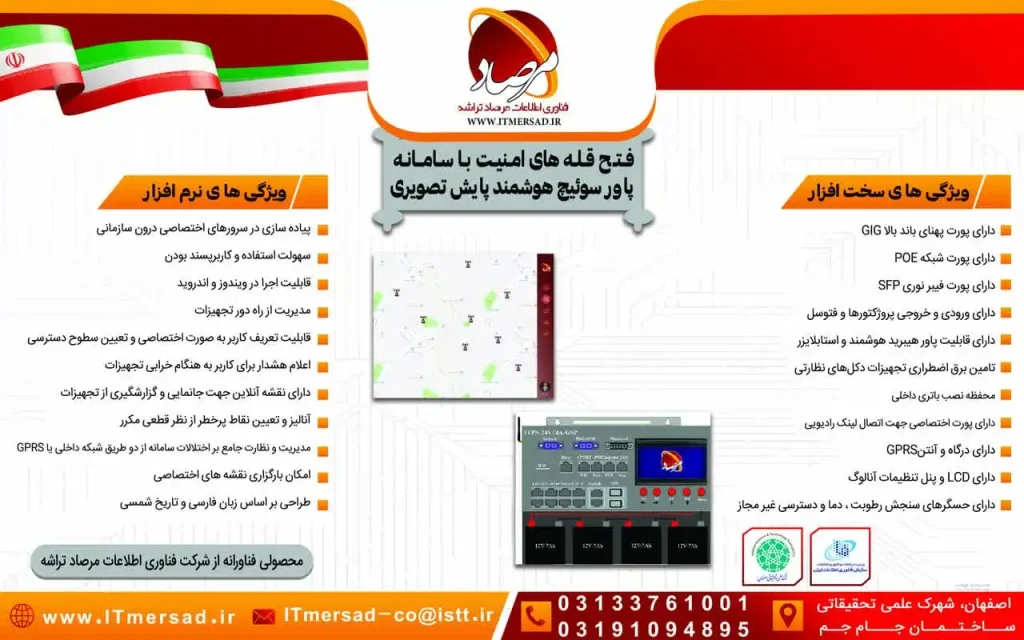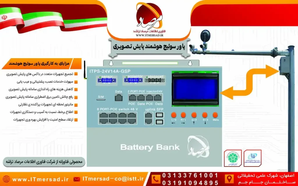 این سامانه ی پاور سوئیچ هوشمند ITPS  که دارای مجوز فناوری از وزارت علوم ، تحقیقات وفناوری می باشد راهکاری است کاربردی که با تجمیع تجهیزات مورد استفاه در هر زون از شبکه پایش تصویری ، سیستم را از تعدد تجهیزات وسردرگمی هنگام نصب و ارائه خدمات و پشتیبانی بی‏نیاز می سازد.